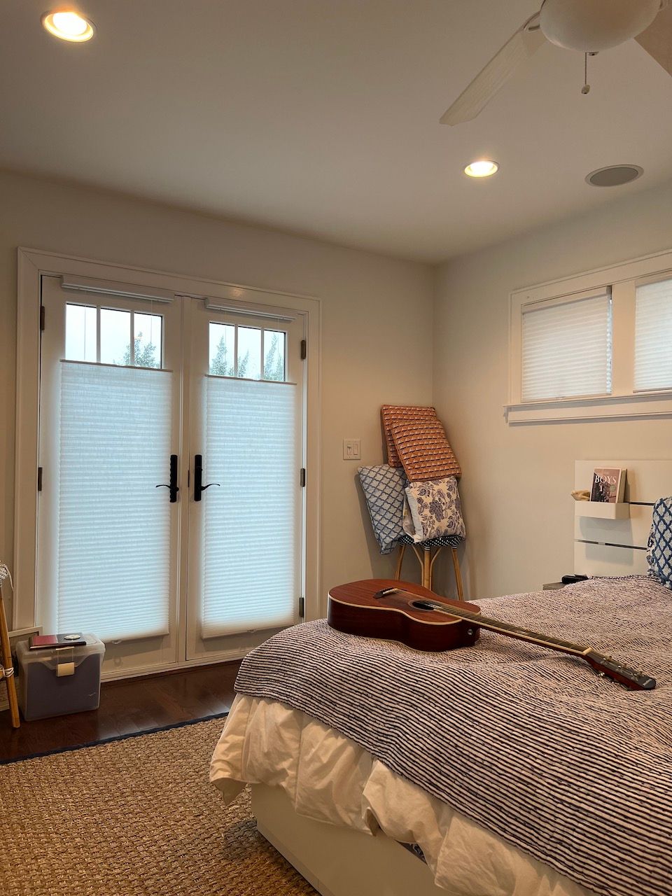 Assortment of photos from this local LB job🤙🏼. Shown: Cellular shades all cordless light filtering. Perfect for privacy on French doors as seen in bedroom.
