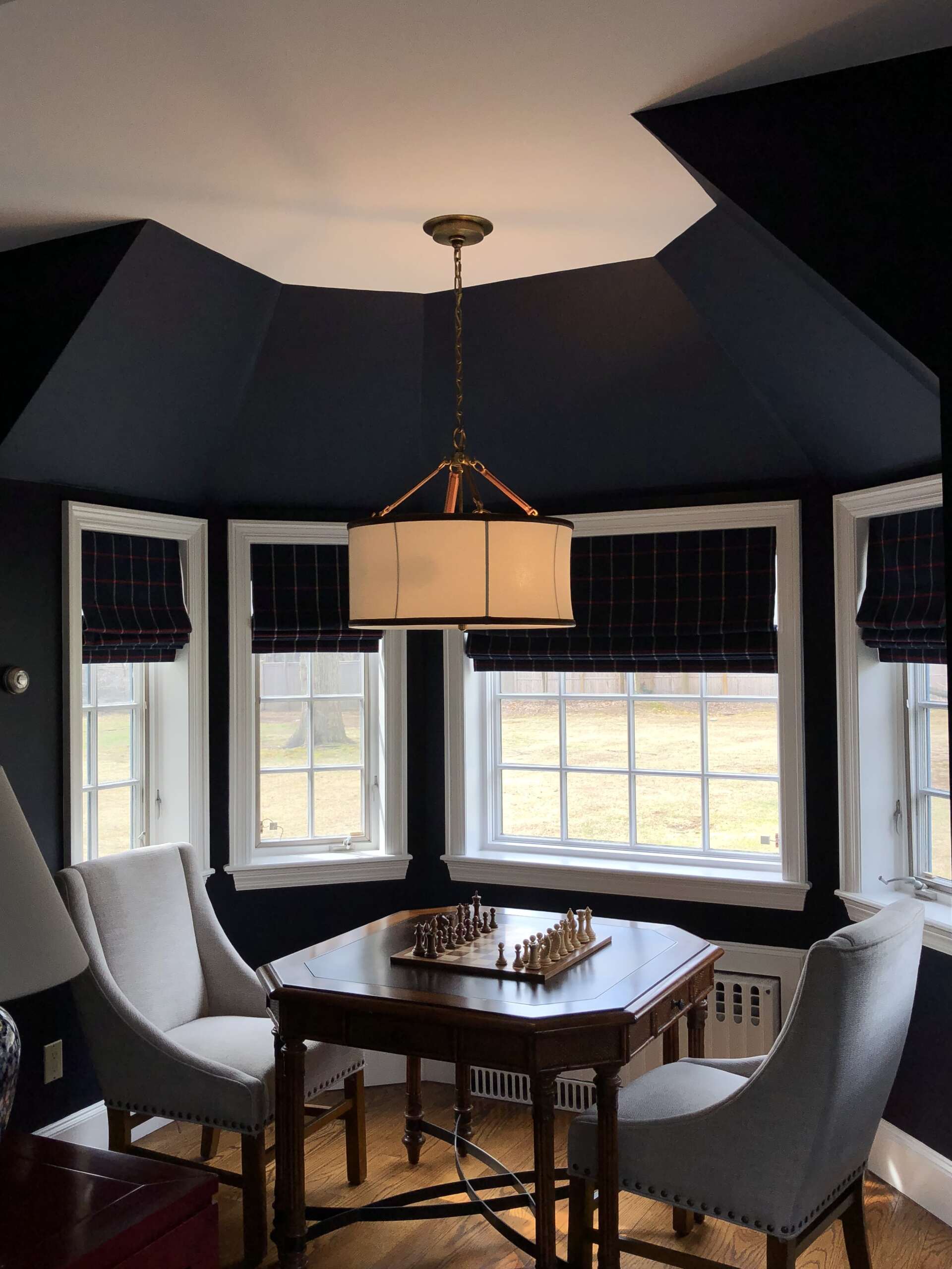 Designer type den ✔️Designed by home owner @frank_randazzo_realtor.kw !Finishing touch with these blackout cellular shades for privacy and more importantly you get that movie theater feeling.