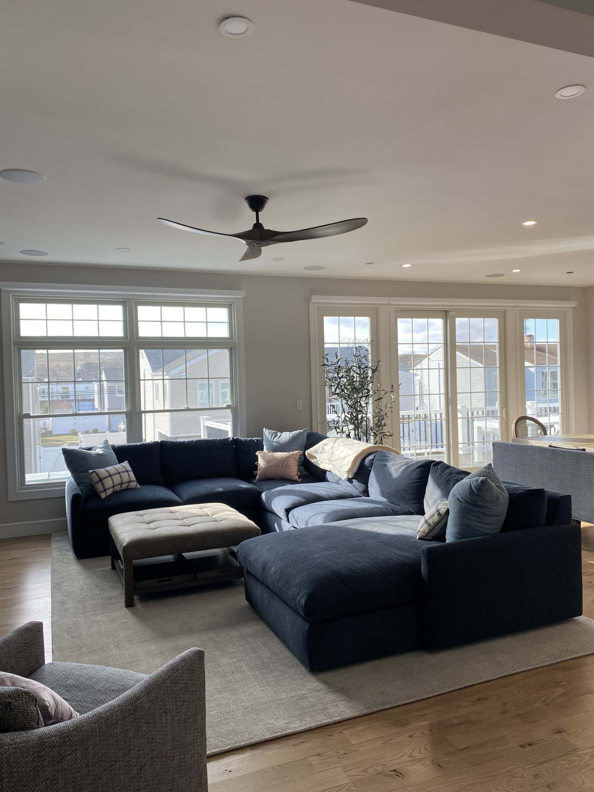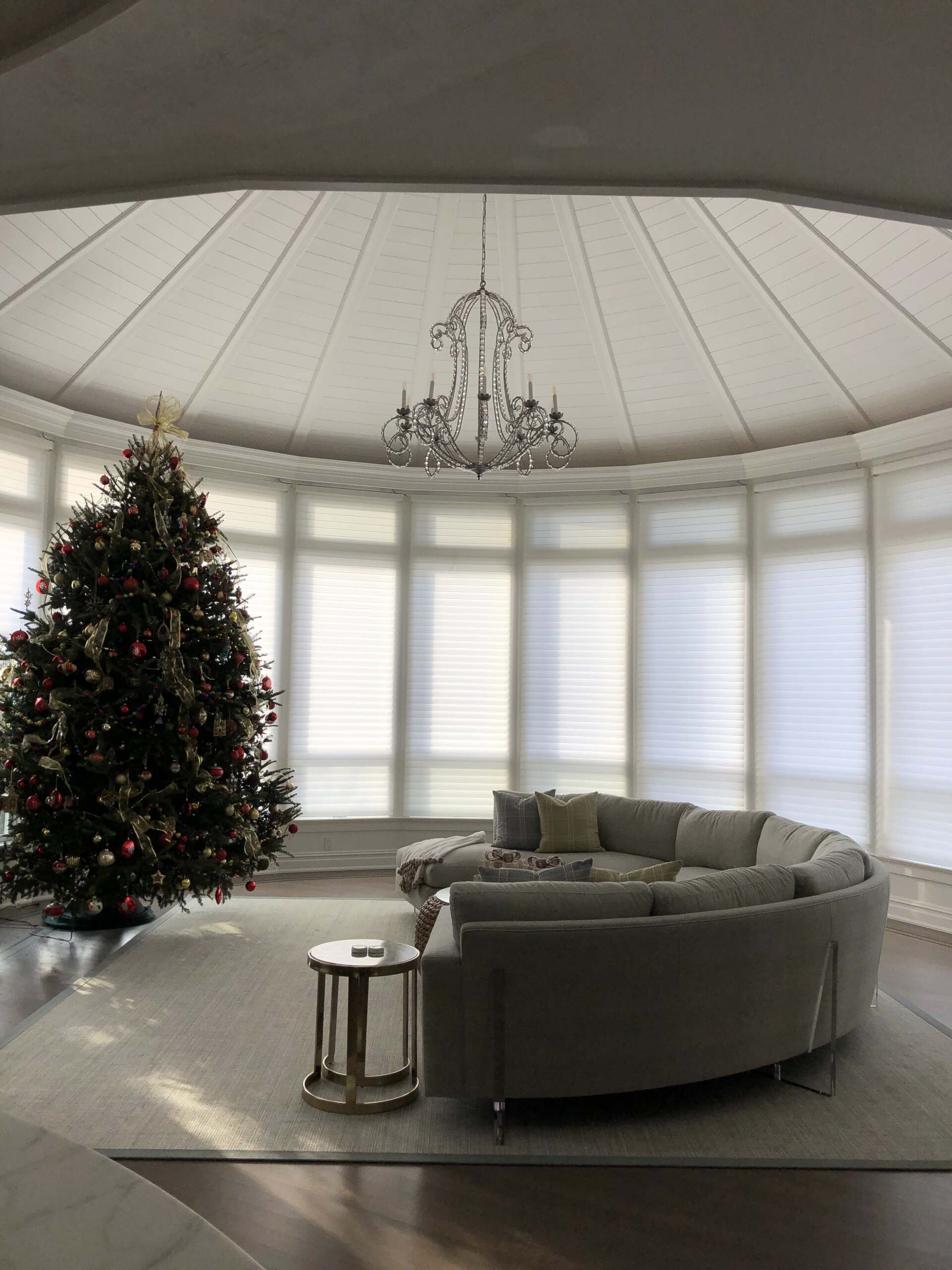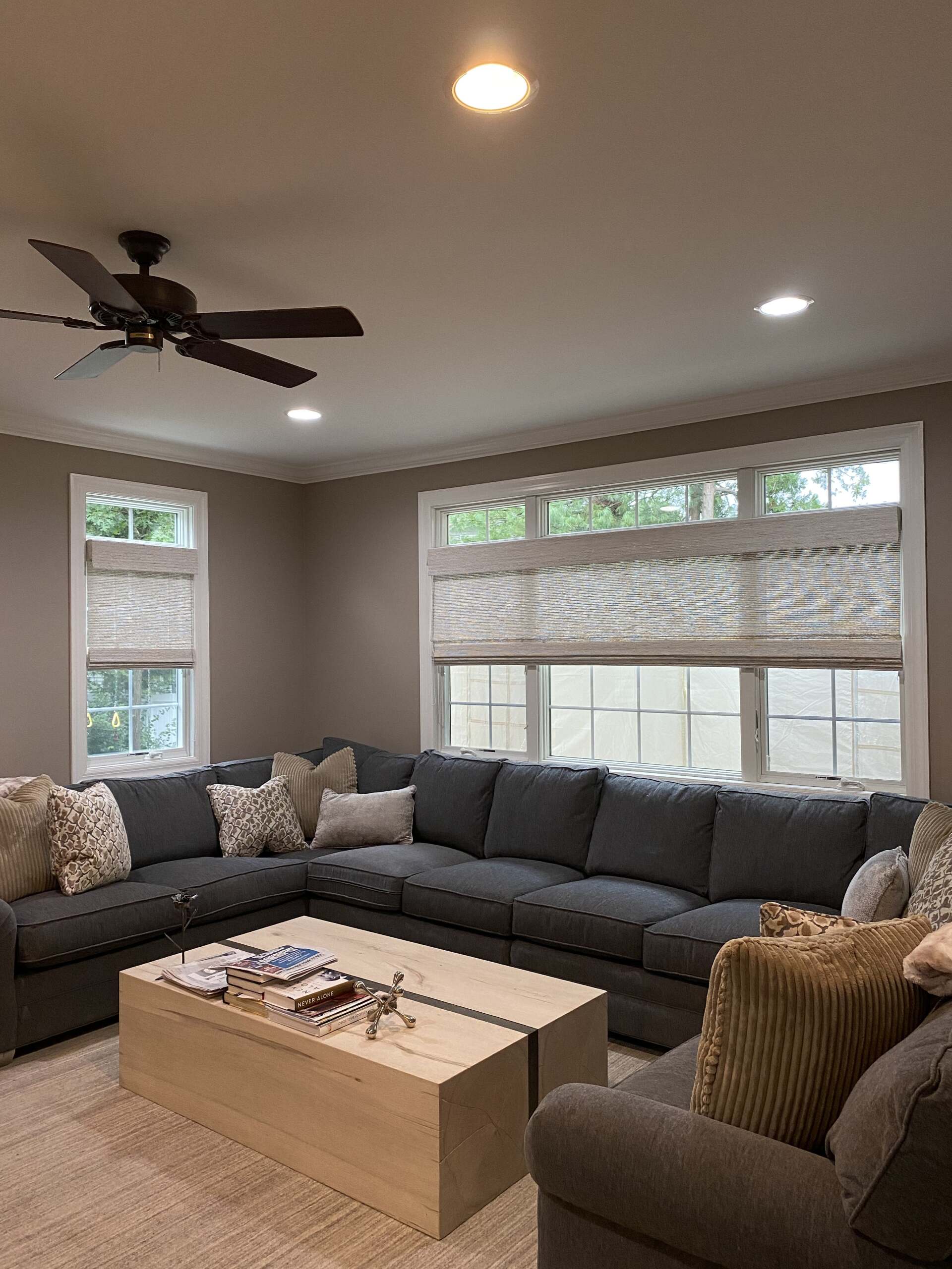Perfect finishing touch to this great room. Still show the transom windows yet give privacy and style to the room. Decorative cordless roller shade w/Classic Valance